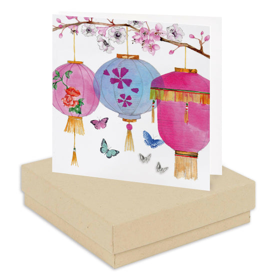 18. Sterling Silver Butterfly Stud Earrings with Chinese Design - Gift Box and Card Included - Crumble and Core