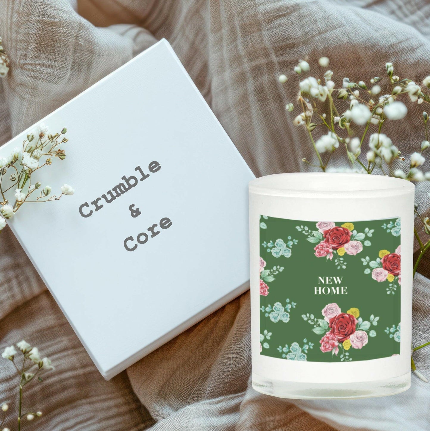 3. Floral Gift Set Boxed Scented Candle and New Home Card Perfect for Housewarming and Special Occasions - Crumble and Core
